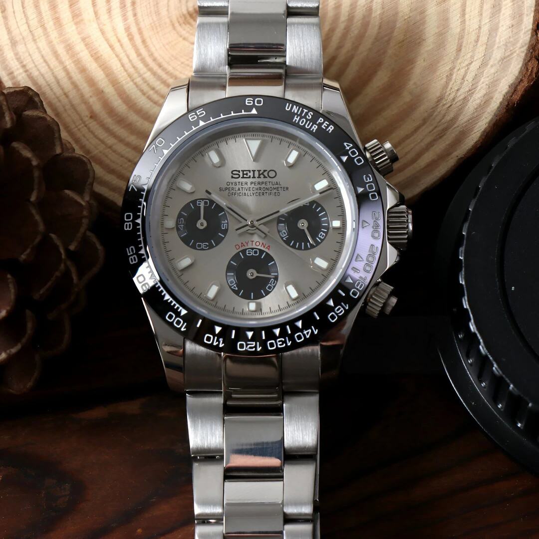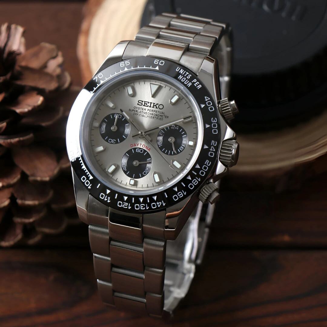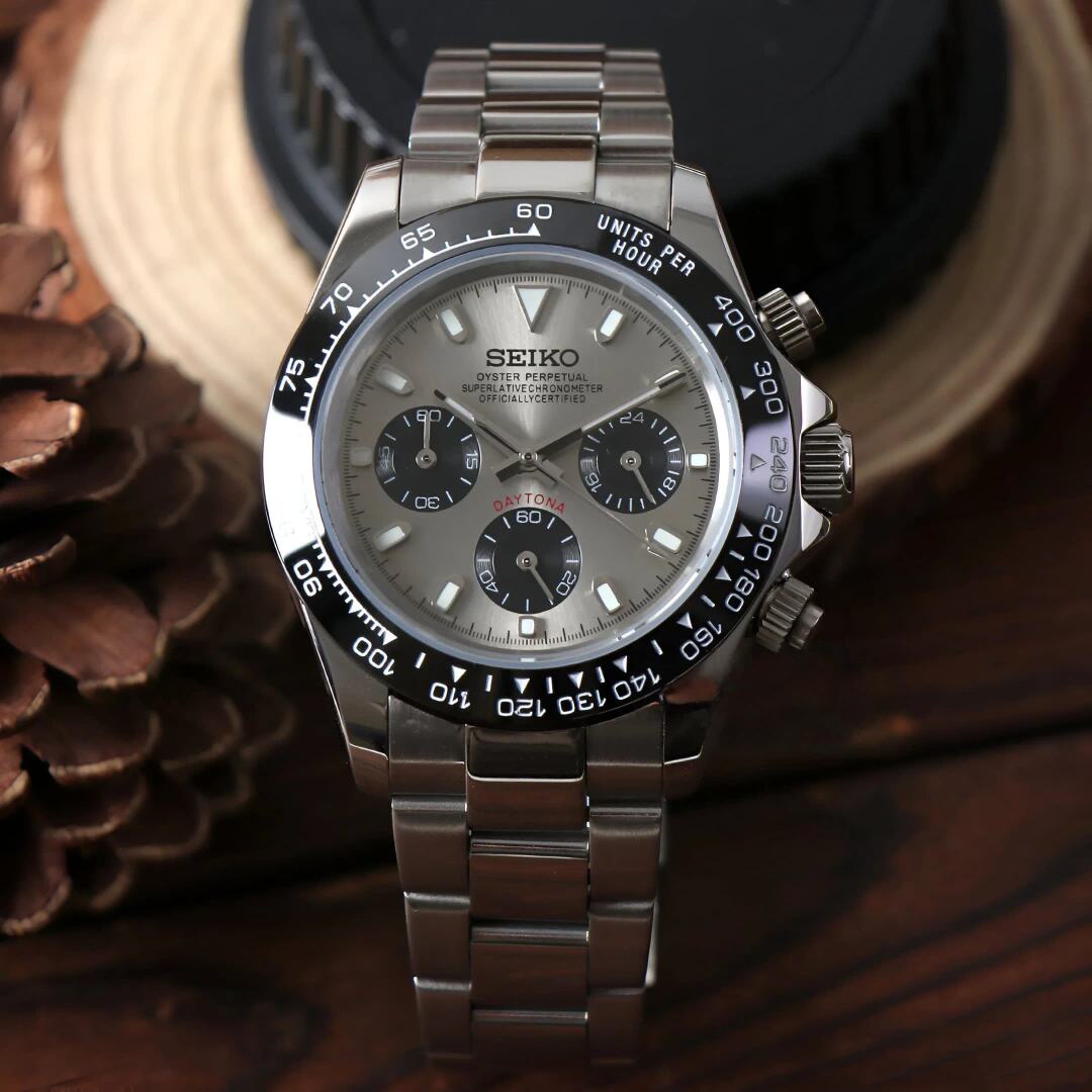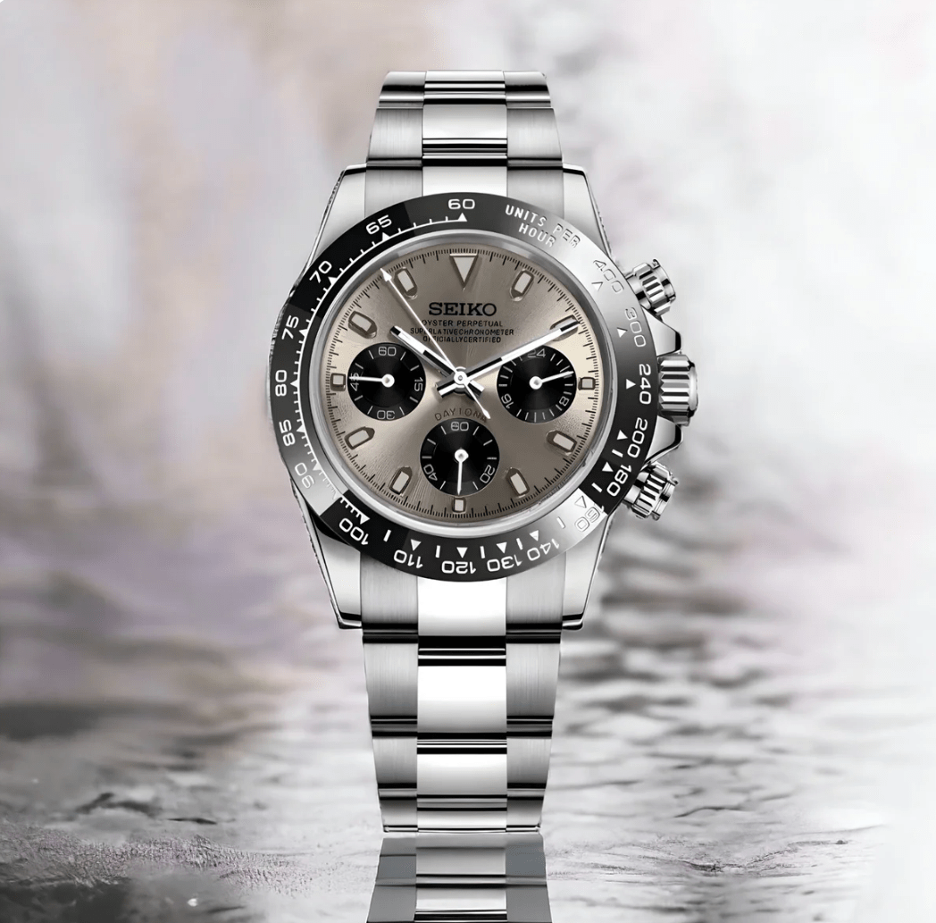 Elevate your style with the Daytona Bronze, a custom Seiko VK63 Mechanical Quartz Watch, inspired by the iconic “Daytona” design. This unique timepiece features a Bronze dial, encased in a 40mm stainless steel frame, offering a blend of elegance and precision for watch enthusiasts.